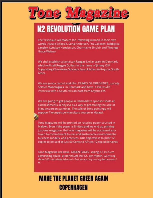 The context of this approach to you is best presented on the website www.reggaeremedy.net, particularly under the titles "LETTER TO ALL JAMAICANS," "TONE MAGAZINE" (where the song "UNESCO REGGAE" is presented), " THE N2 REVOLUTION," and "LETTER TO ROLLING STONE SOUTH AFRICA."